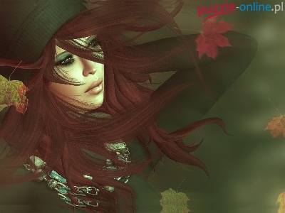 Puzzle Jesienne, Dziewczyna, Brunetka, Liście