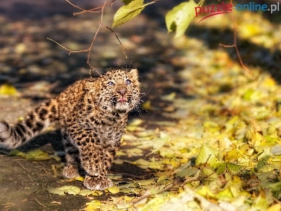 Jesienne, Mały, Lampart, Liście