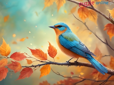 Kolorowy, Jesienne, Ptak, Grafika, Liście