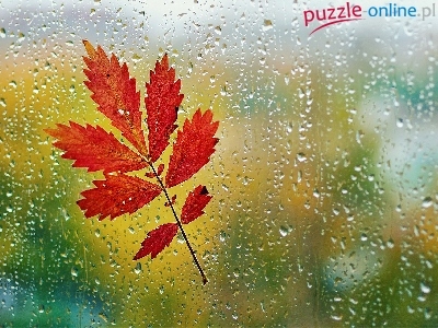 Puzzle Jesienny, Szyba, Deszcz, Liść