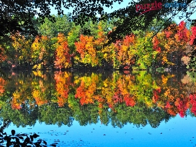Puzzle Jesienny, Jezioro, Drzewa, Las
