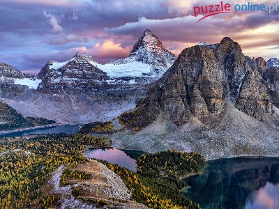 Jeziora, Góry Skaliste, Lasy, Kanada, Mount Assiniboine, Góra, Alberta