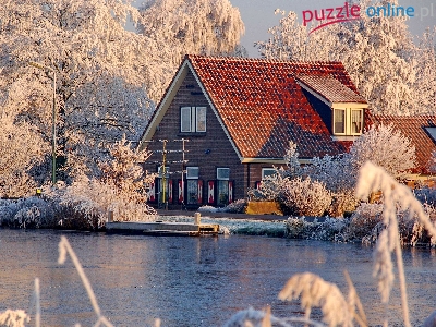Puzzle Jeziorem, Dom, Nad, Drzewa
