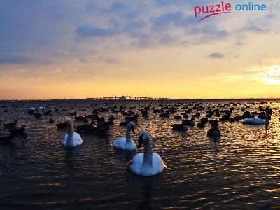 Puzzle Łabędzie, Jezioro, Chmury