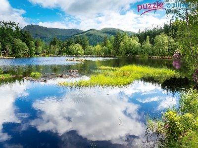 Anglia, Jezioro, Odbicie, Las, Szkocja, Góry, Niebo
