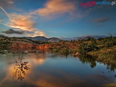 Jezioro, Światło, Góry, Chmury, Przebijające