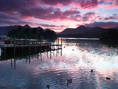 Puzzle Jezioro, Różowe, Chmury, Przystań