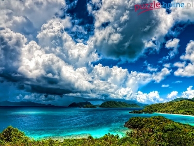 Puzzle Chmury, Jezioro, Wyspa