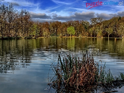 Puzzle Jezioro Lac Neyton, Francja, Dagneux, Drzewa