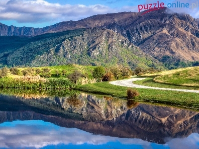 Puzzle Jezioro, Góry, Droga, Drzewa