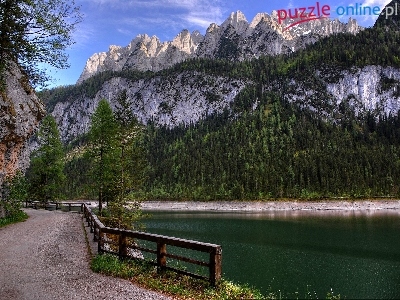 Puzzle Jezioro Gosau, Góry, Droga, Austria