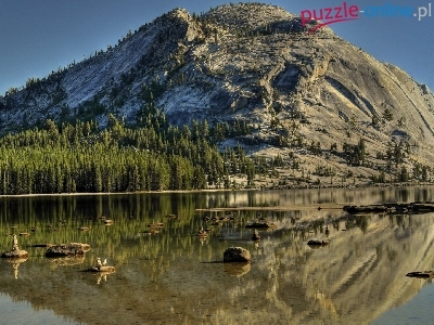 Jezioro, Odbicie, Góry, Drzewa, Kamienie