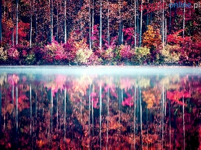 Jezioro, Kolorowe, Drzewa, Odbicie