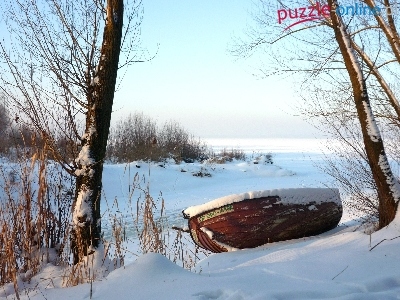 Puzzle Jezioro, Łódz, Drzewa, Zima