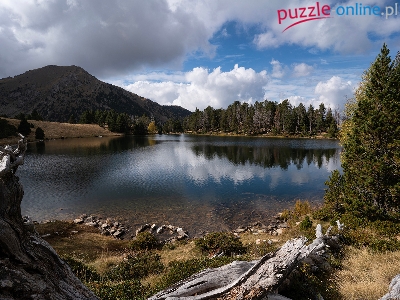 Góry, Jezioro, Drzewa, Pień, Suchy