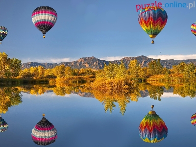 Puzzle Jezioro, Jesień, Góry, Balony