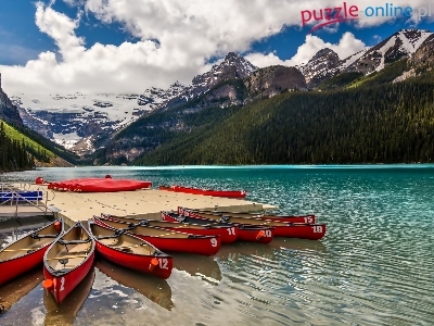 Jezioro, Przystań, Kanada, Góry, Łodzie