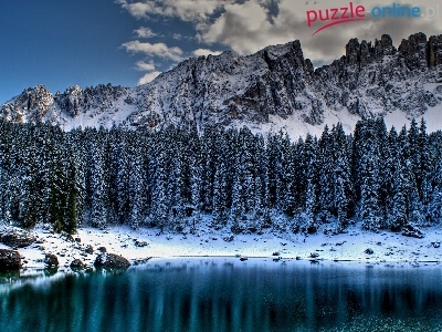 Puzzle Jezioro, Lasy, Góry, Zima