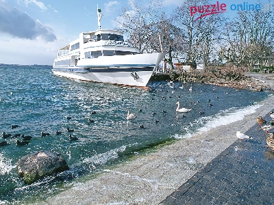 Puzzle Jezioro, Biały, Jacht, Ptaki