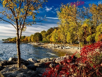 Jesień, Jezioro, Drzewa