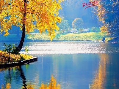 Jezioro, Odbicie, Złota, Jesień, Drzewa