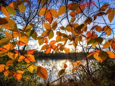Jesienne, Jezioro, Liście