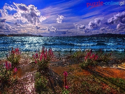 Puzzle Kwiaty, Jezioro, Chmury