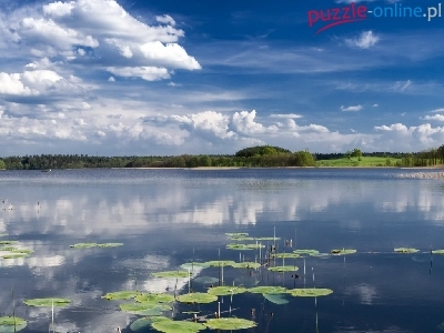 Puzzle Las, Jezioro, Chmury