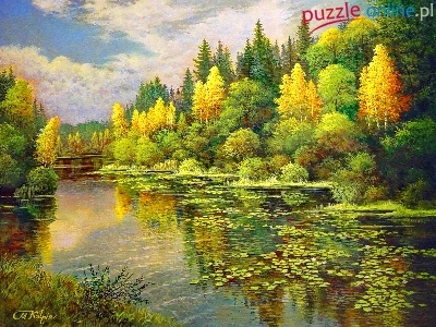 Puzzle Las, Jezioro, Jesień