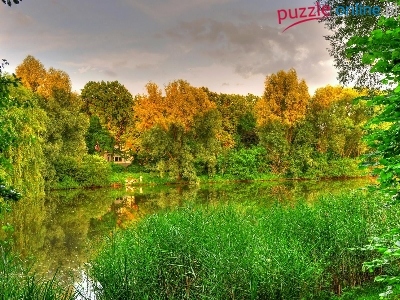 Puzzle Jezioro, Jesień, Las, Trawy
