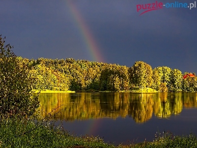 Puzzle Las, Jezioro, Tęcza