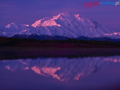 Puzzle Jezioro, Góry, Śnieg, Odbicie