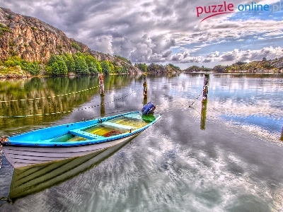 Puzzle Łódka, Jezioro, Odbicie