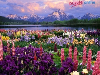 Jezioro, Kwiaty, Gór, Różne, Ogród, Szczyty