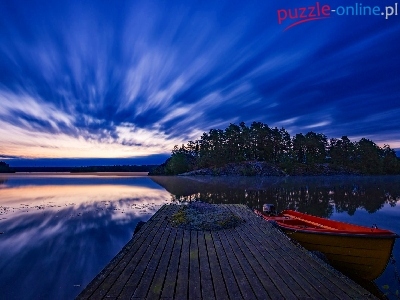 Puzzle Jezioro, Łódka, Pomost, Świt
