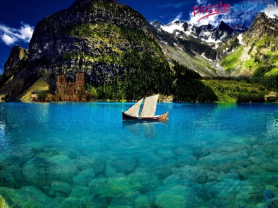 Puzzle Jezioro, Góry, Przejrzyste, Łódka