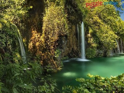 Wodospad, Plitvice, Rośliny, Chorwacja, Park Narodowy Jezior Plitwickich, Jezioro