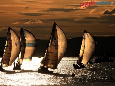 Puzzle Jezioro, Zachód, Słońca, Żaglówki