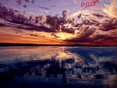 Puzzle Jezioro, Zachód, Słońca, Chmury