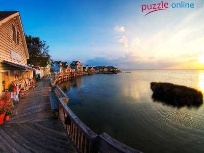 Puzzle Jezioro, Zachód Słońca, Domy
