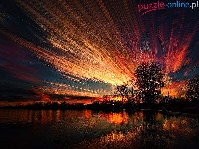 Puzzle Jezioro, Zachód, Słońca, Drzewa