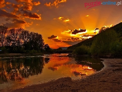 Puzzle Jezioro, Zachód, Słońca, Drzewo