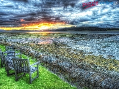 Puzzle Jezioro, Zachód, Słońca, Fotele
