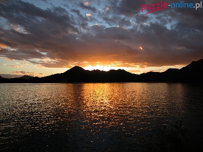 Puzzle Jezioro, Zachód Słońca, Góry