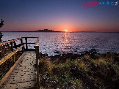Puzzle Jezioro, Zachód, Słońca, Kładka