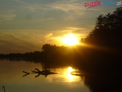 Puzzle Jezioro, Zachód, Słońca, Kłoda