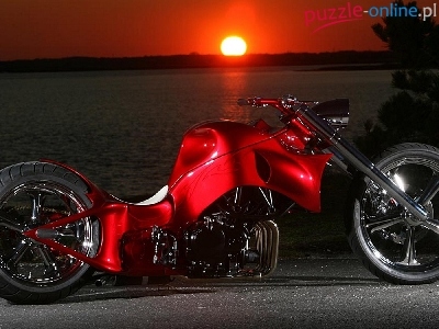 Jezioro, Motocykl, Zachód, Słońca, Czerwony