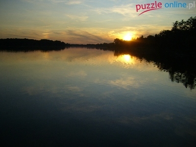 Puzzle Jezioro, Zachód, Słońca, Odbicie