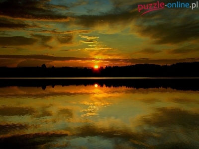 Puzzle Jezioro, Zachód, słońca, Odbicie