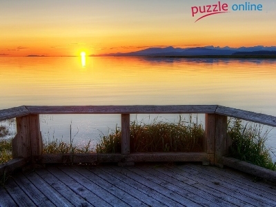 Puzzle Jezioro, Zachód, Słońca, Pomost